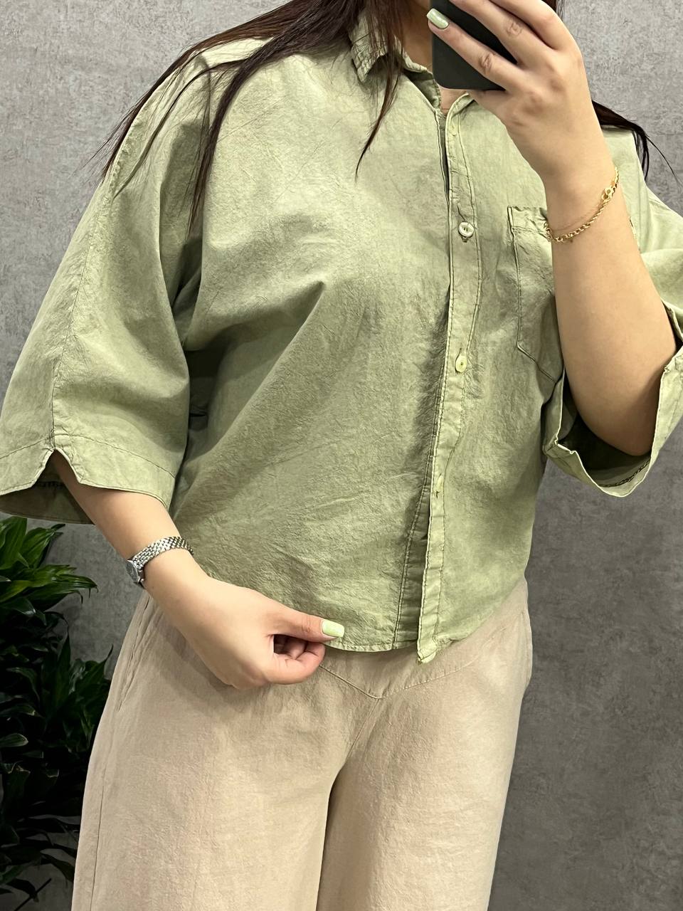 شومیز دخترونه کوتاه جنس لینن کاغذی