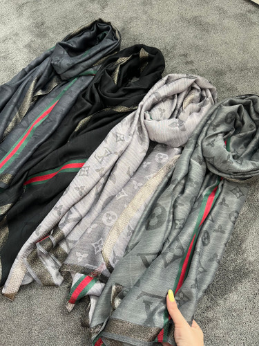 شال وارداتی دستک ماهی طرح گوچی دورگان حریر
