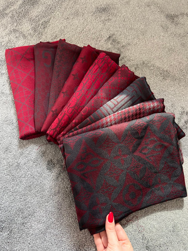 شال ابریشم ژاکارد رنگ زرشکی طرح مارک