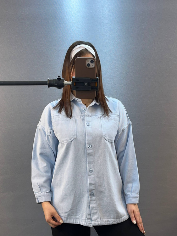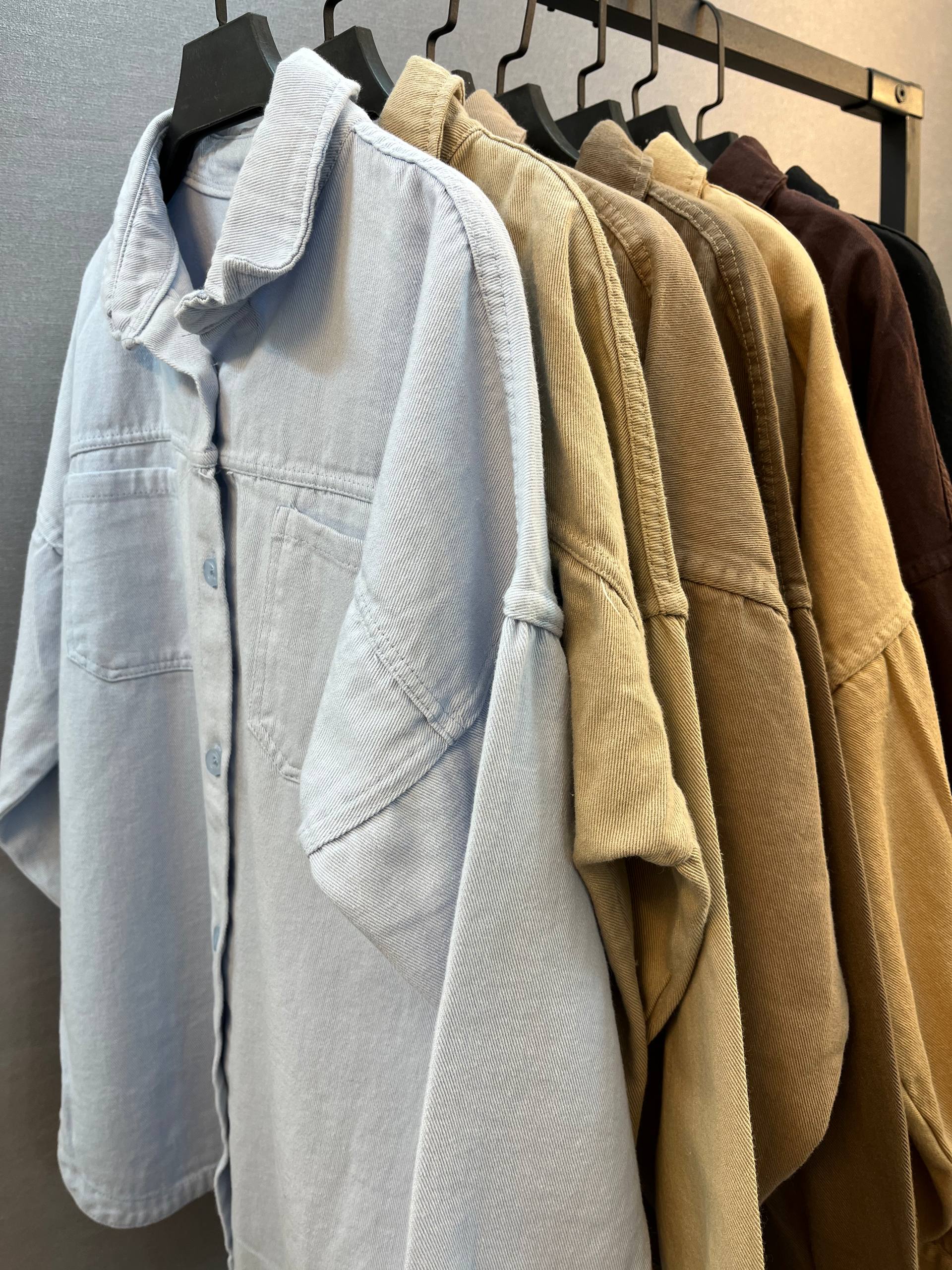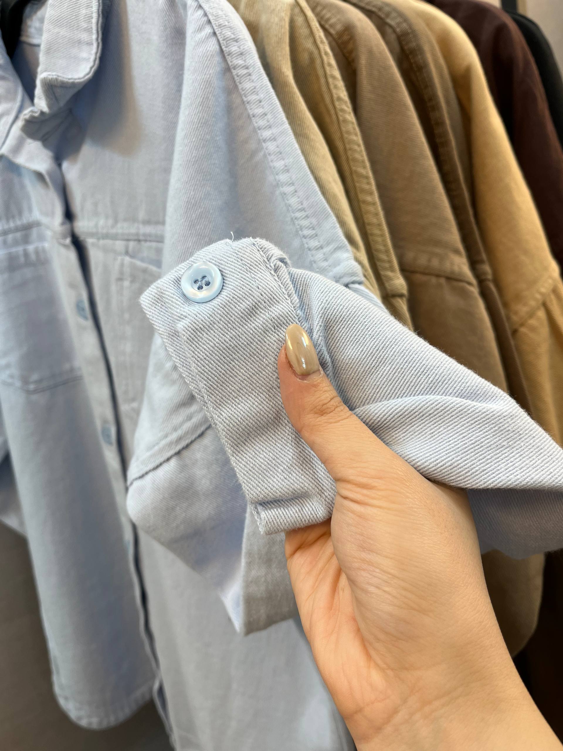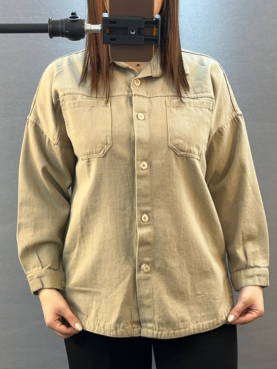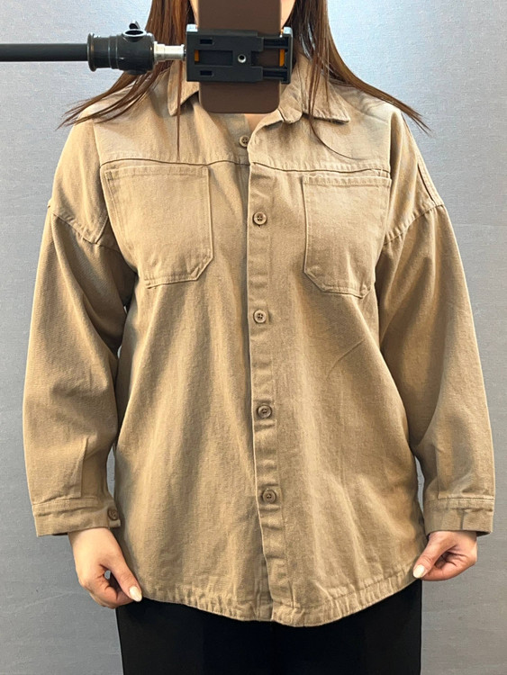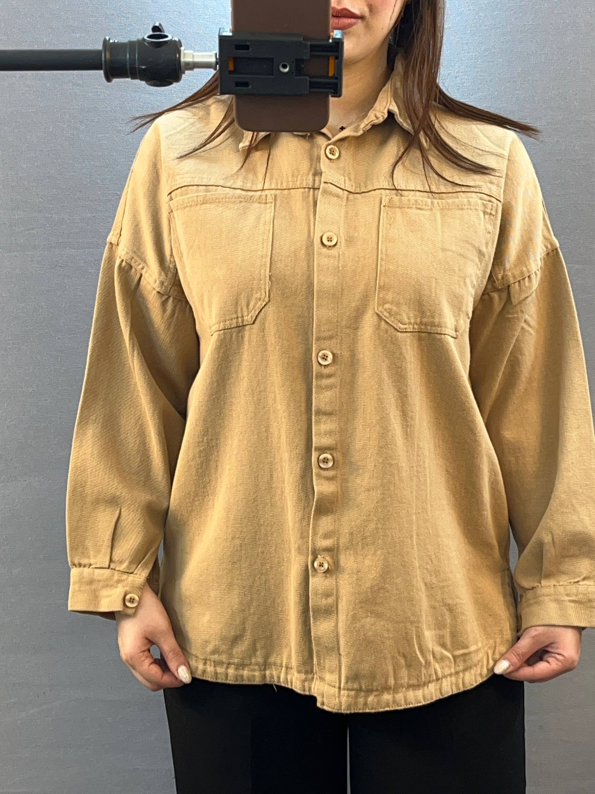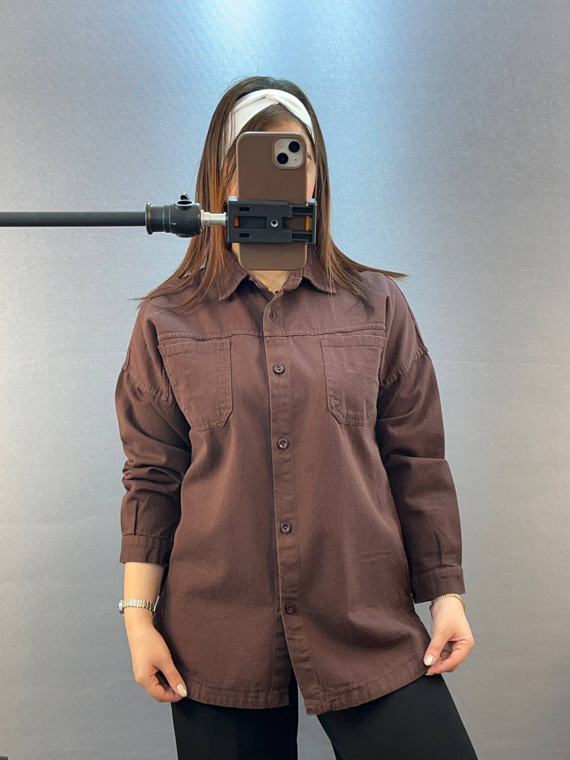 شومیز مانتویی زنانه کتان گرم جلو دکمه شستشده فریسایز