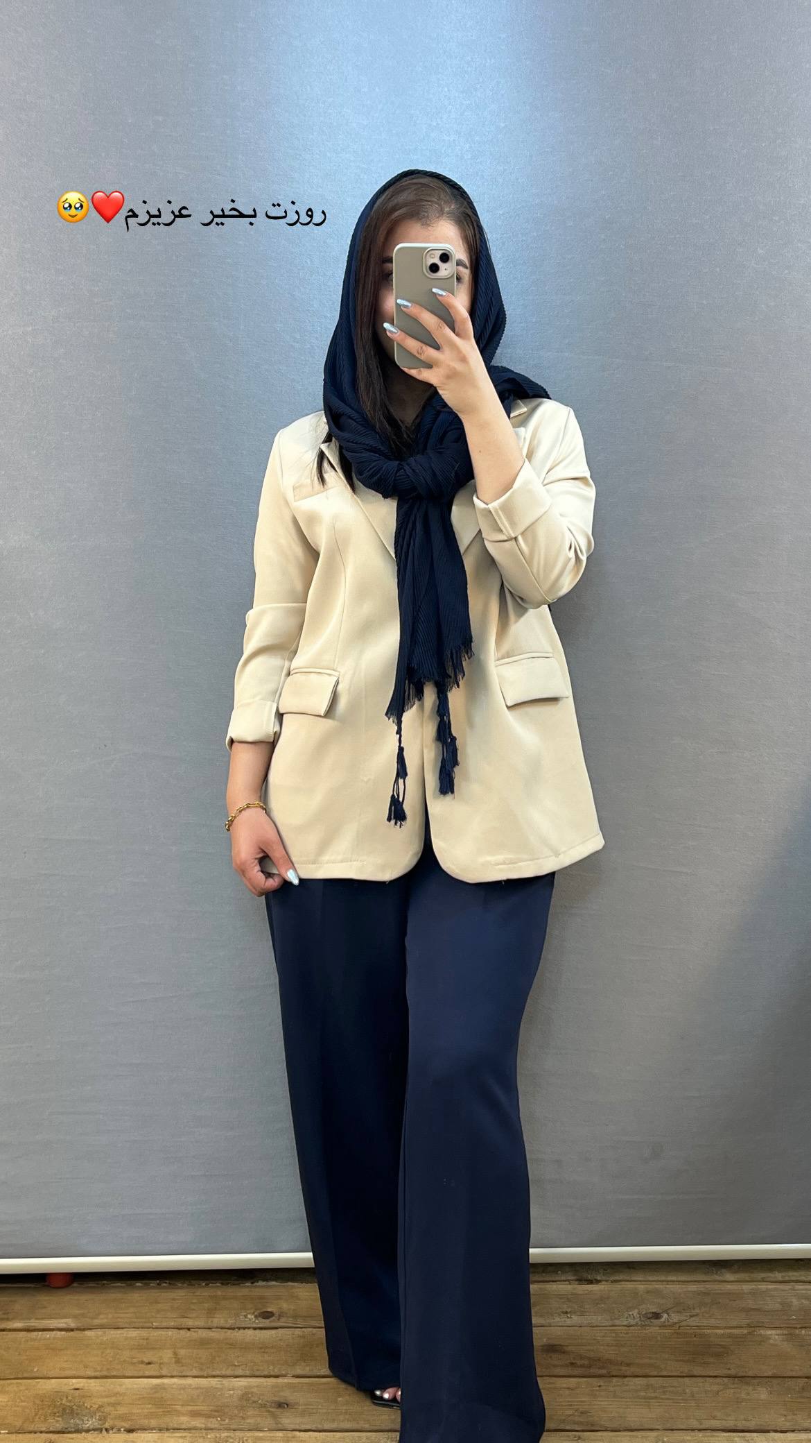 جنس مازراتی باکیفیت باعث شده کت ایستایی فوقالعادهای روی بدن داشته باشه و خیلی مرتب و حرفهای دیده بشه. طراحی تکدکمه، استایل رو کشیدهتر و ظریفتر نشون میده و بهراحتی با شلوار پارچهای، جین یا حتی دامن ست میشه.