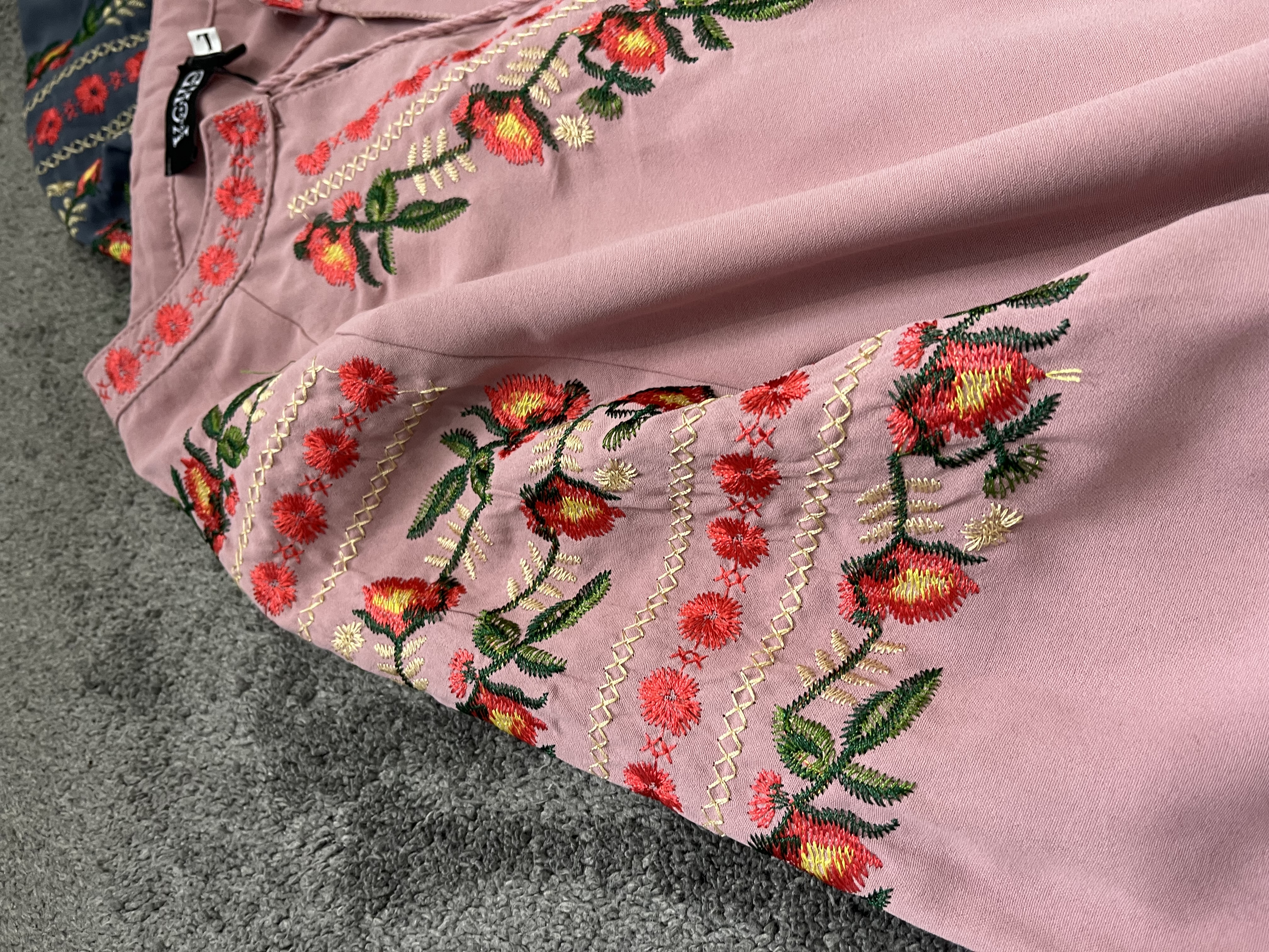 حاشیه کار: سر یقه و سرشانه گلدوزی شده